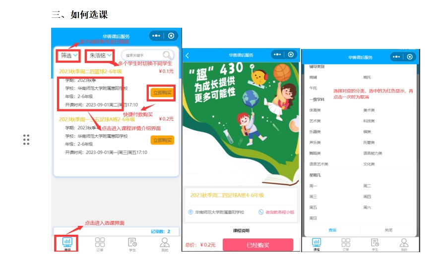 4、支持大并发学员在线购买支付,在线预约上课,课后点评等