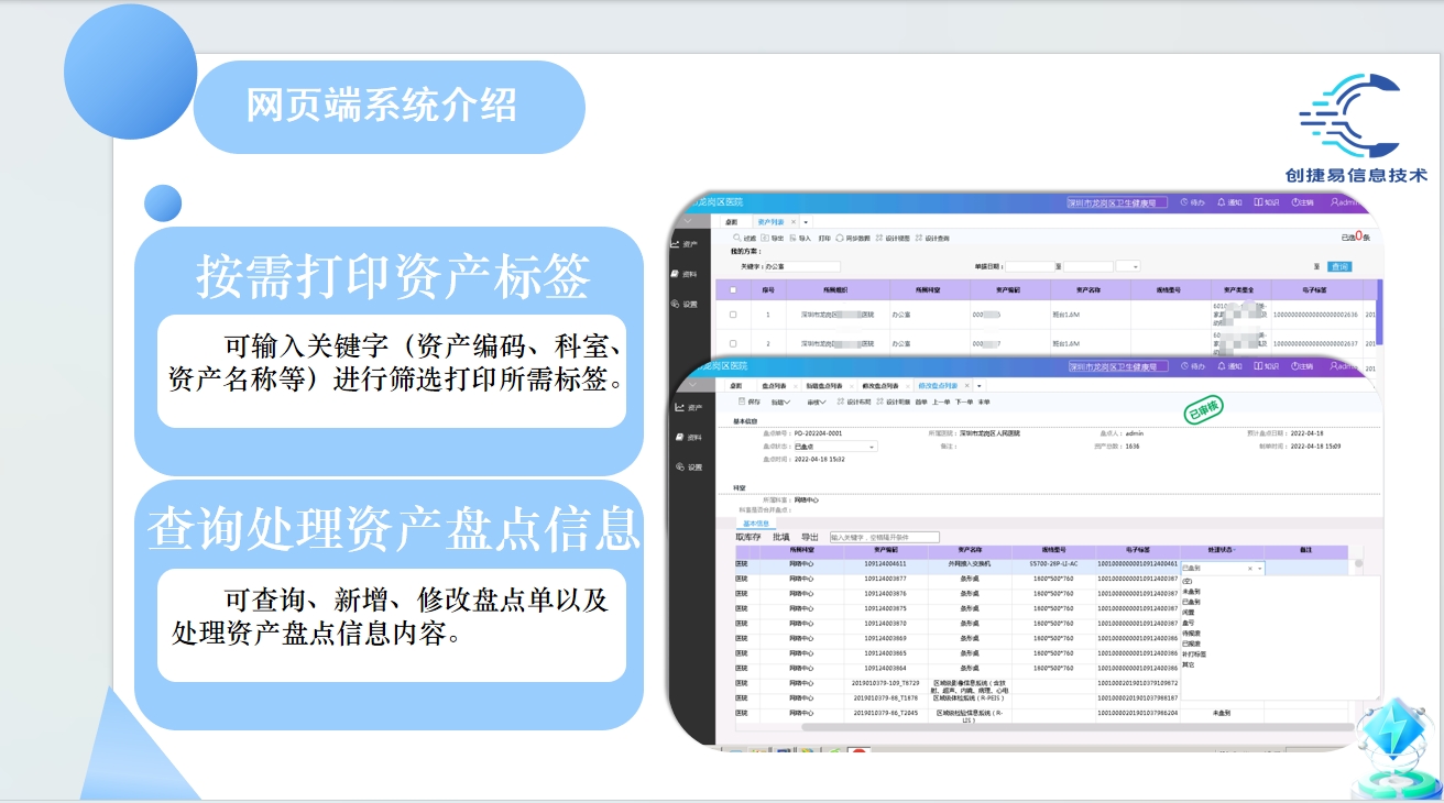 2、跟原有资产管理系统对接,自动同步资产档案信息,在系统里按需批量建立盘点任务单,下发到盘点员盘点机上